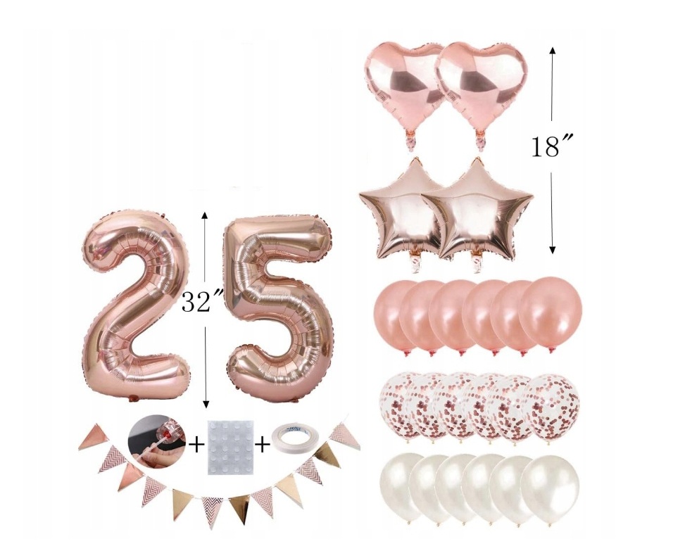 Balony dekoracja urodzinowa 25 zestaw różowe złoto