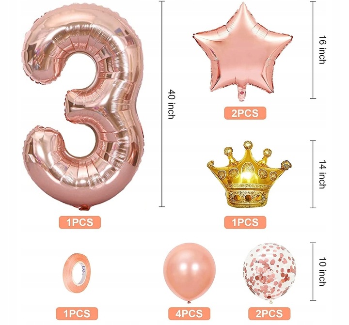 Zestaw balonów na urodziny 3 RÓŻOWE